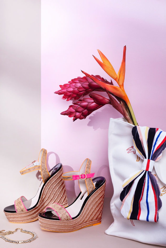 Images for Bergdorf Goodman's blog, The BD Edit. The story features a collection of summer items such as sunglasses, bathing suits, and colorful wedges.